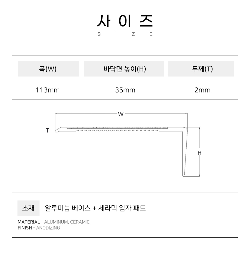 113mm * 35mm * 2mm 길이 주문 제작(1mm단위) 가능